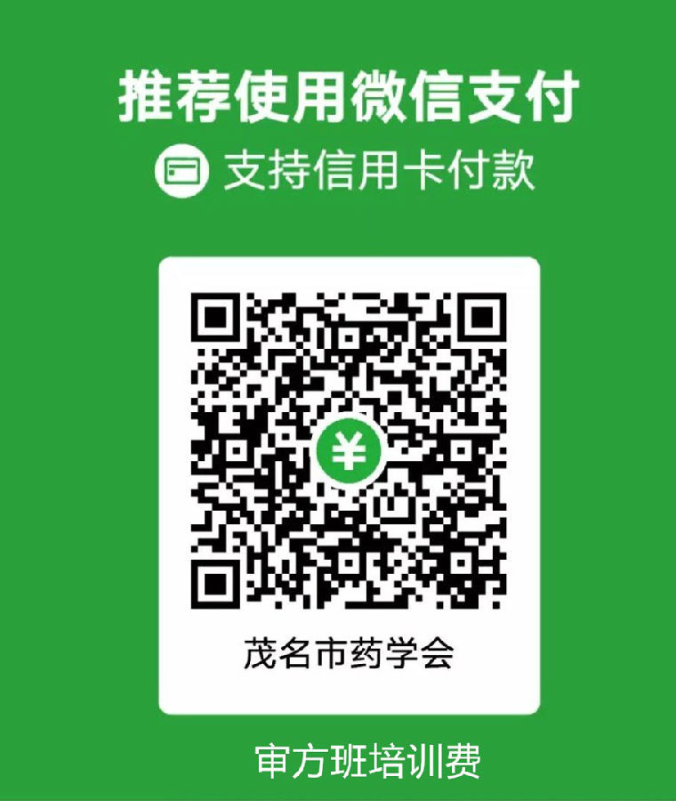 培訓費用:800元/人(不含交通、食宿費用,請自行解決交通食宿問題)。請各學員于5月18日前將培訓費用匯款至茂名市藥學會,或直接掃微信二維碼繳費,繳費后由茂名市藥學會統(tǒng)一開具收費發(fā)票。
