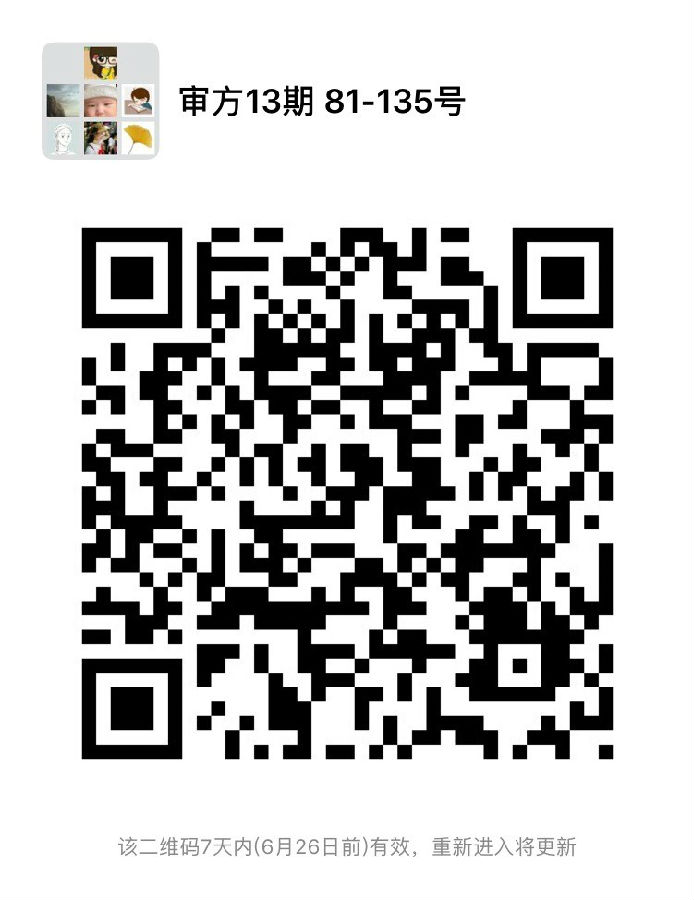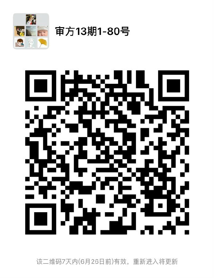 四、請(qǐng)對(duì)照錄取名單編號(hào),盡快掃描下圖二維碼加入學(xué)員微信群(2019年6月24日前),1-80號(hào)加入微信群“審方13期1-80號(hào)”,81-135號(hào)加入微信群“審方13期81-135號(hào)”,培訓(xùn)相關(guān)事宜會(huì)在群上通知,入群后更改群昵稱為“編號(hào) 姓名 工作單位”,歡迎加入審方班大家庭?。?!
