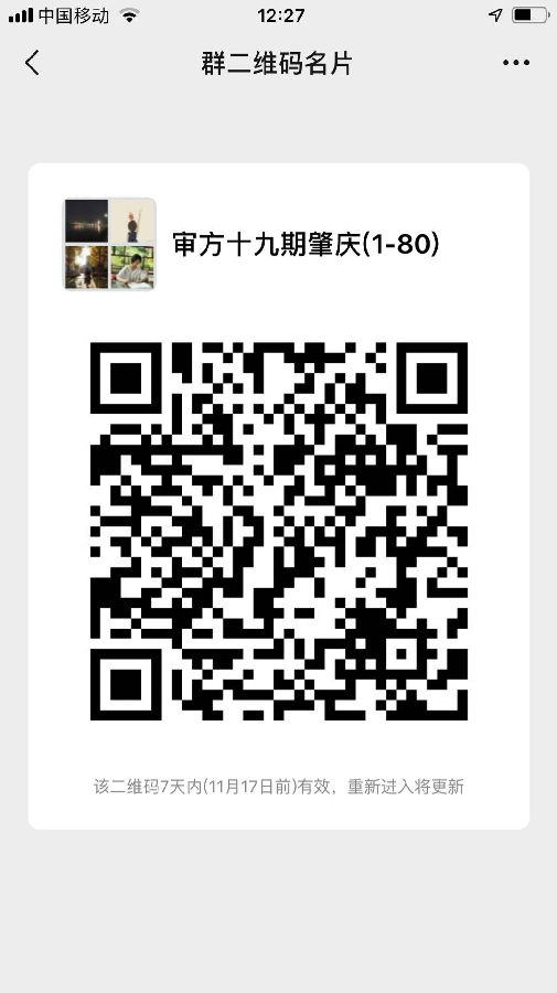 請學(xué)員按照錄取名單中的編號掃二維碼加入學(xué)員微信群,編號:1-81號學(xué)員加入微信群“審方十九期肇慶(1-81)”,編號82-150號學(xué)員加入微信群“審方十九期云?。?2-150)”。學(xué)員入群后第一時間將群昵稱更改為“編號+姓名+醫(yī)院”,培訓(xùn)期間相關(guān)事宜統(tǒng)一在群中通知。