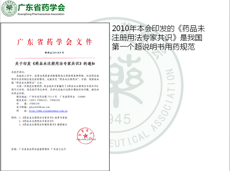 廣東省科協(xié)官網(wǎng)報(bào)道:廣東省藥學(xué)會(huì)持續(xù)11年推動(dòng)的規(guī)范超說(shuō)明書(shū)用藥工作被寫(xiě)入新版《醫(yī)師法》,http://www.gdsta.cn/Item/35177.aspx
