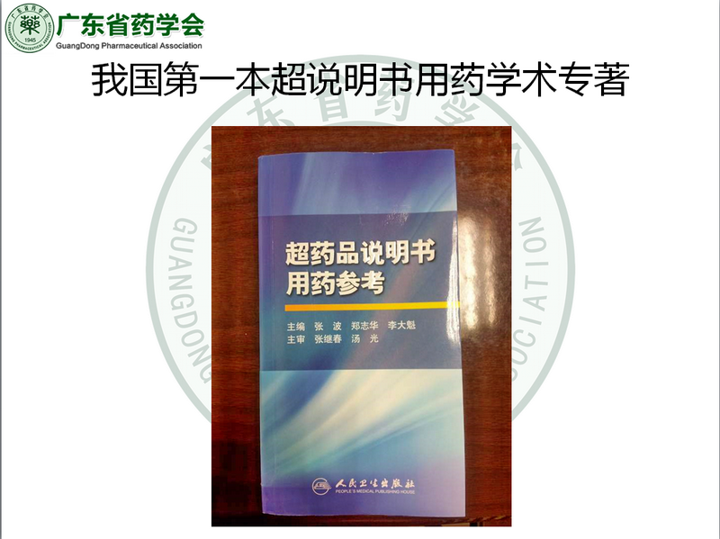 2011年廣東省藥學(xué)會(huì)發(fā)起并與中國(guó)藥學(xué)會(huì)科技開(kāi)發(fā)中心、北京協(xié)和醫(yī)院共同主編我國(guó)第一本超說(shuō)明書(shū)用藥學(xué)術(shù)專(zhuān)著