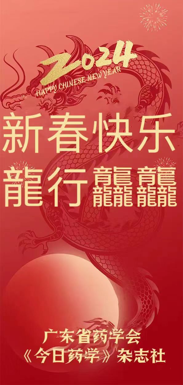 值此2024年新春佳節(jié)來臨之際,廣東省藥學(xué)會(huì)、《今日藥學(xué)》雜志社全體工作人員祝全體理事、全體會(huì)員、全省藥學(xué)工作者新春大吉、闔家幸福、龍行龘龘!
