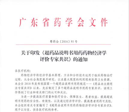 關(guān)于印發(fā)《超藥品說(shuō)明書(shū)用藥藥物經(jīng)濟(jì)學(xué)評(píng)價(jià)專(zhuān)家共識(shí)》的通知