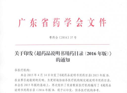 關(guān)于印發(fā)《超藥品說明書用藥目錄(2016年版)》的通知