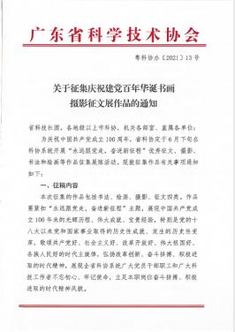 全體理事、會員:為慶祝中國共產(chǎn)黨成立100周年,省科協(xié)決定開展“永遠跟黨走,奮進新征程”優(yōu)秀征文、攝影、書法和繪畫等作品征集展陳活動。具體征集要求請見附件。請本會理事、會員積極響應(yīng),踴躍投稿。因時間緊,請大家直接向省科協(xié)投稿;投稿后的“作品信息表”同時發(fā)本會郵箱(gdsyxh45@126.com)備案。聯(lián)系人:陳民...發(fā)布時間:2021-04-30 09:36:28 | 瀏覽:972 -