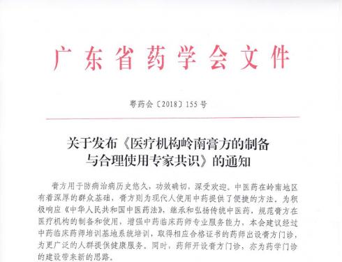 關于發(fā)布《醫(yī)療機構嶺南膏方的制備與合理使用專家共識》的通知