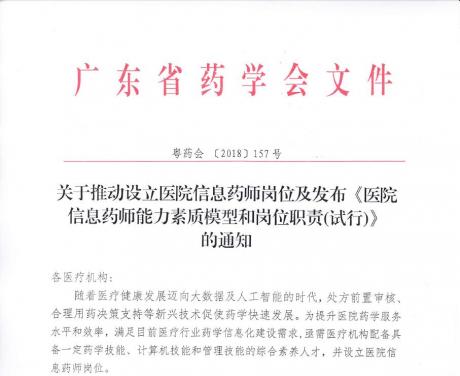關于推動設立醫(yī)院信息藥師崗位及發(fā)布《醫(yī)院信息藥師能力素質模型和崗位職責(試行)》的通知