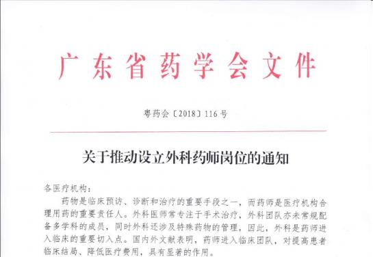 關(guān)于推動(dòng)設(shè)立外科藥師崗位的通知